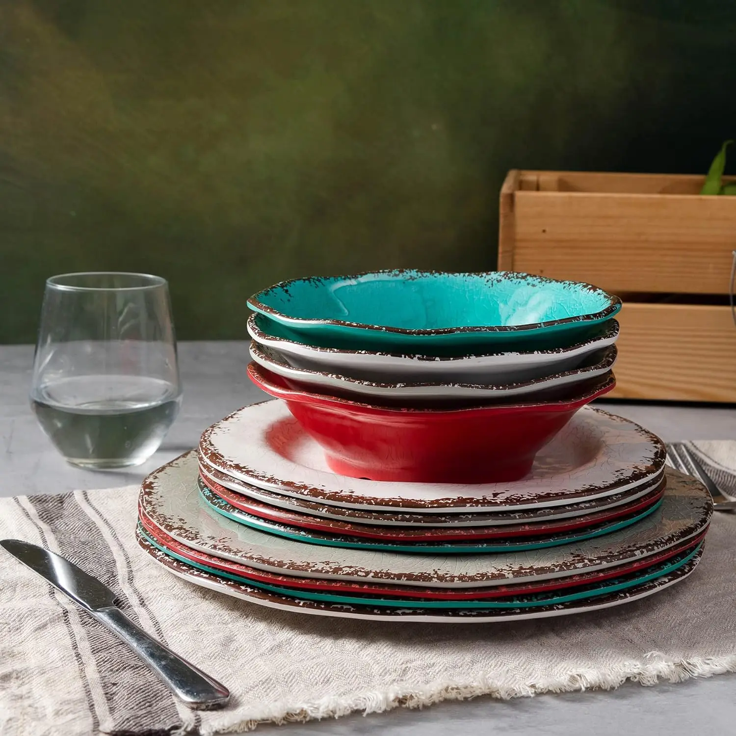 - EVERYDAY USE: The chip-resistant kitchen dish dinnerware set is perfect for indoor or outdoor dining such as RVs, cabins and camping