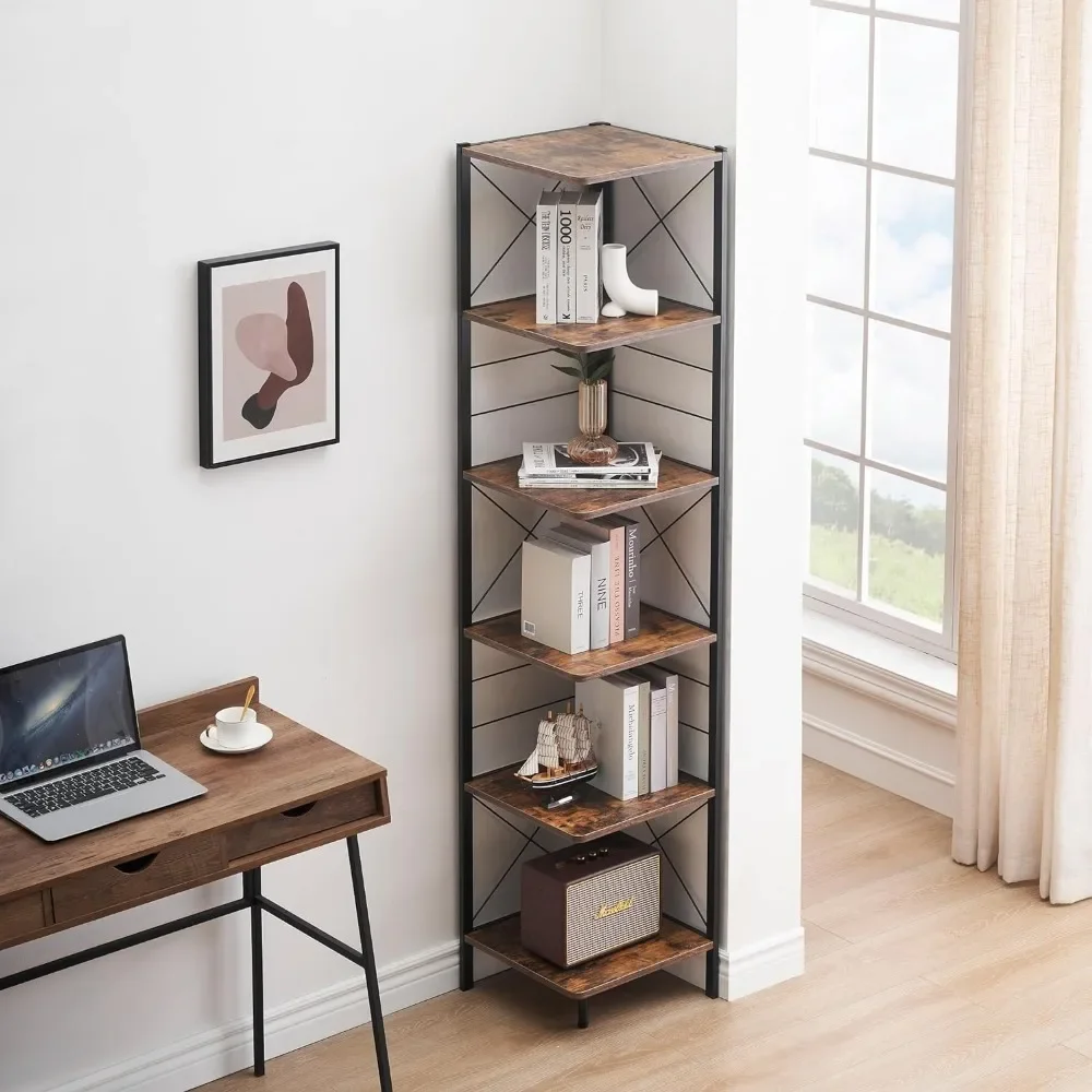 - Multifunctional Corner Shelf: This storage shelves can be used as a corner bookshelf, display shelf, storage shelf or plant shelf in any corner of the living room, bedroom, home office, kitchen, hallway, balcony. Metal fences beside prevents your items from slipping off. This 6 tier industrial corner shelf organizer is the perfect gift that combines function and decoration, making it a great gift for family and friends.