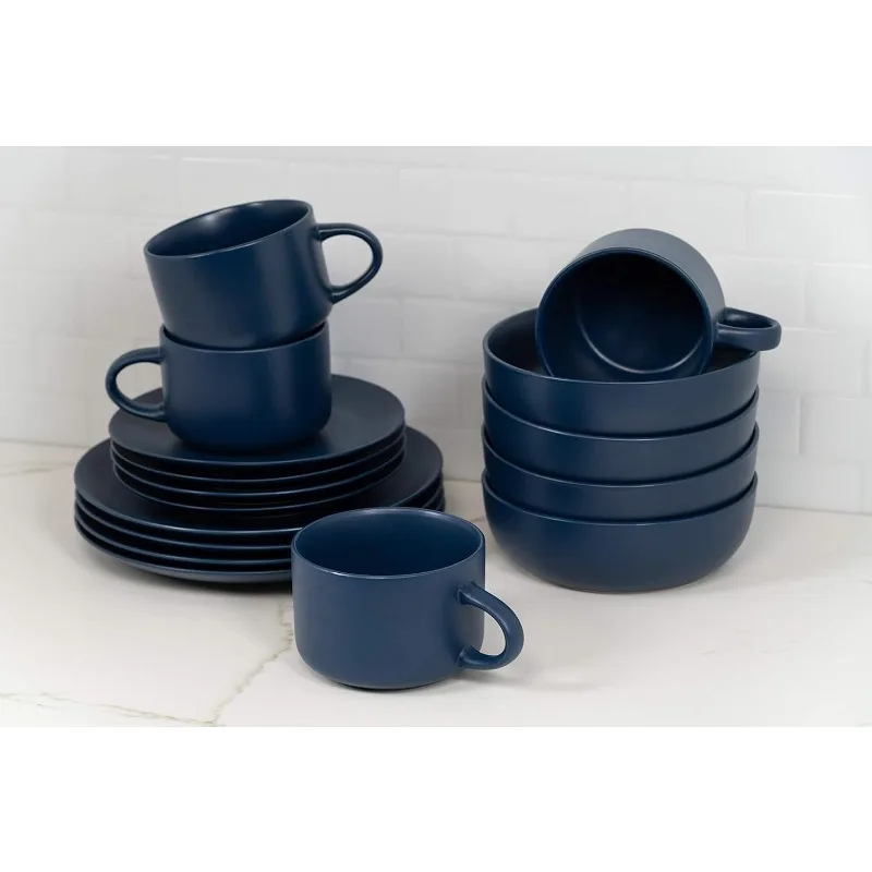 Wazee Matte Coupe Dinnerware Set, 16 pc, Midnight Blue
