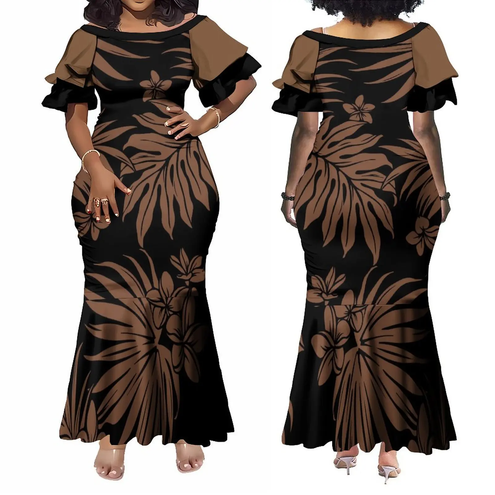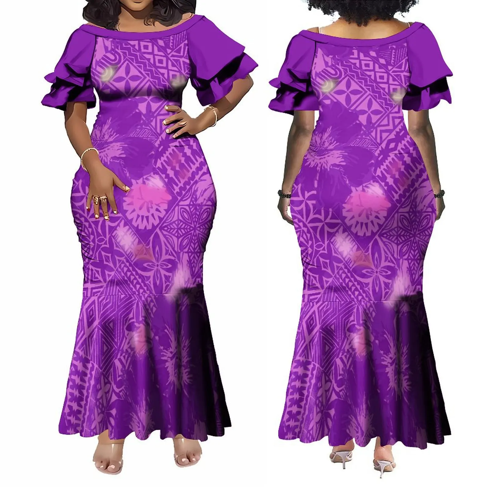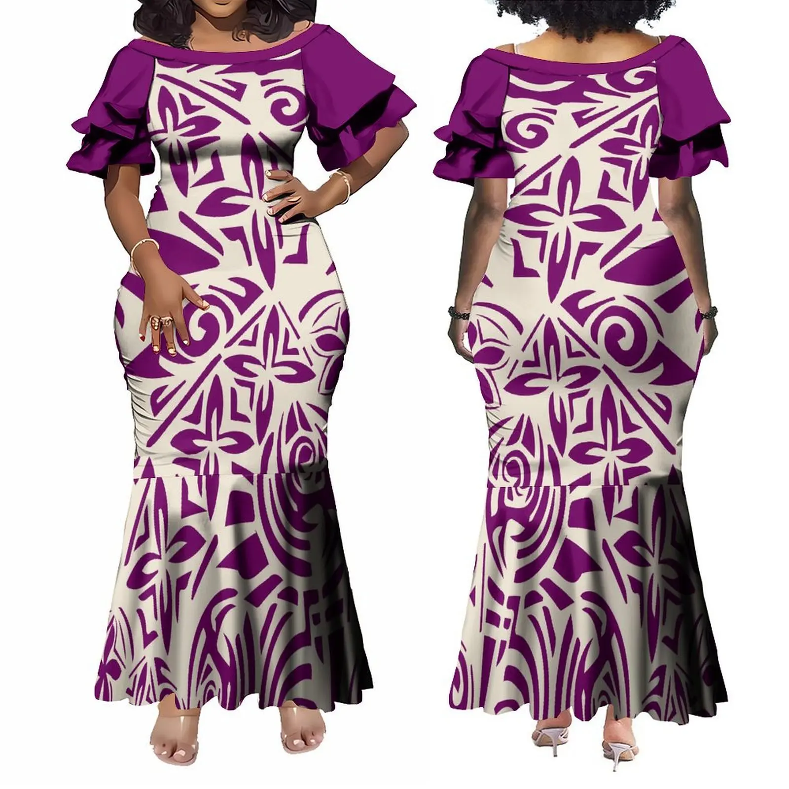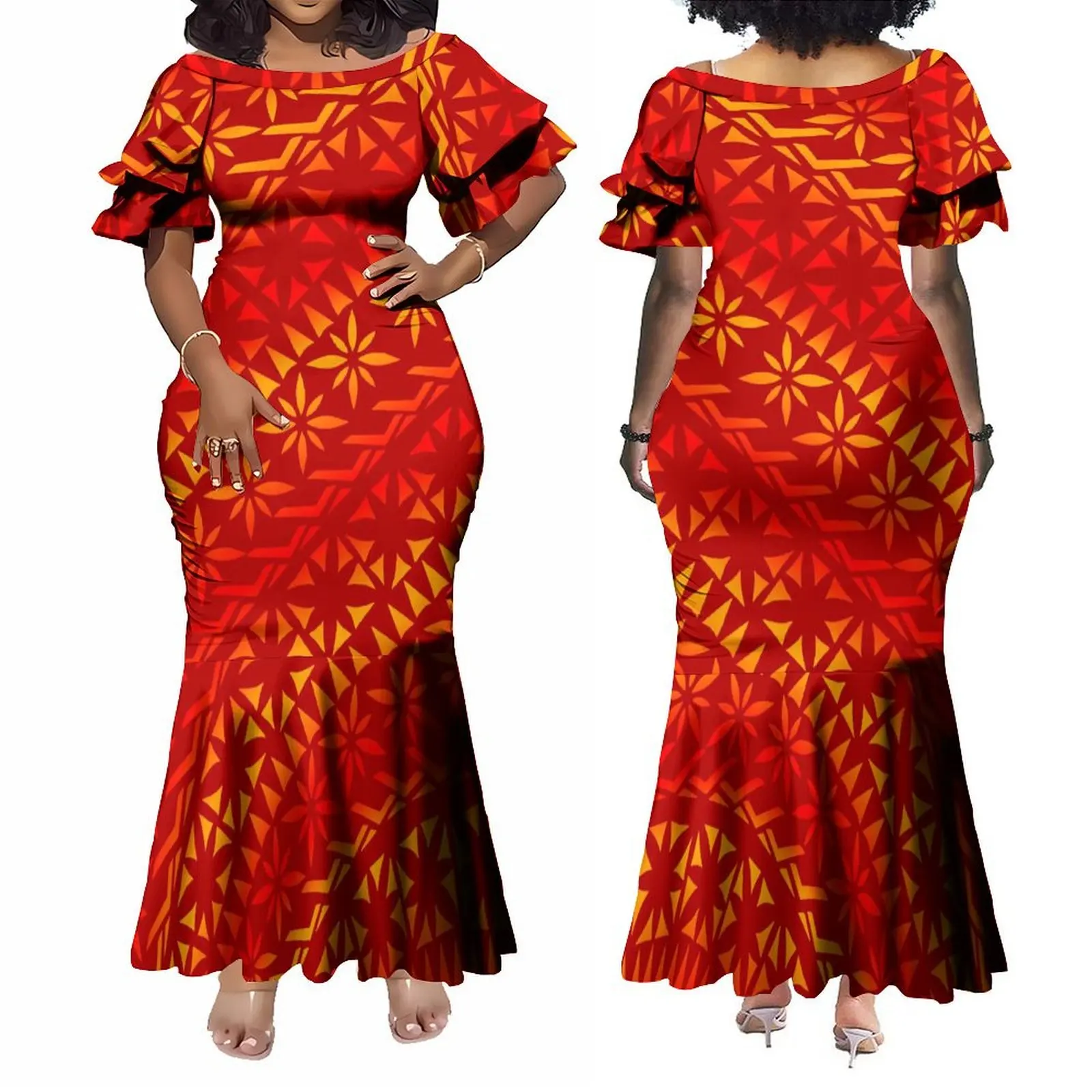Wholesale Customized Double Layered Ruffle Sleeve Ladies Long Fishtail Mermaid Dress Polynesian Dress Plus Size Womens Clothing