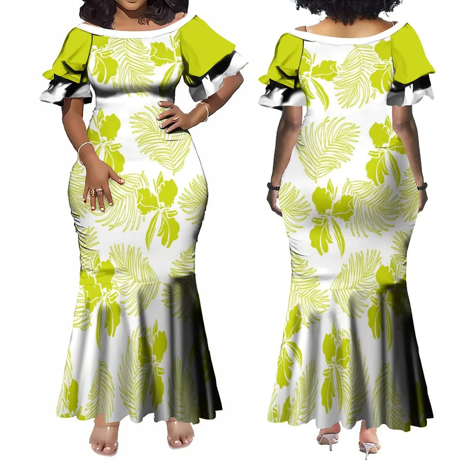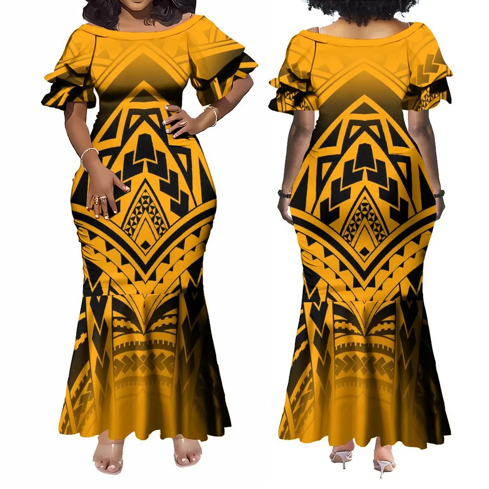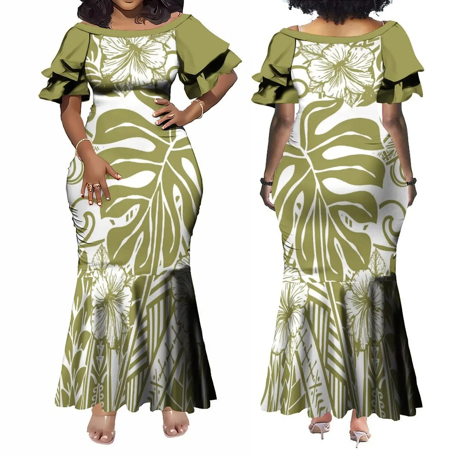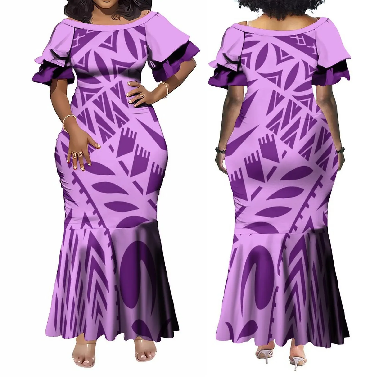 Wholesale Customized Double Layered Ruffle Sleeve Ladies Long Fishtail Mermaid Dress Polynesian Dress Plus Size Womens Clothing